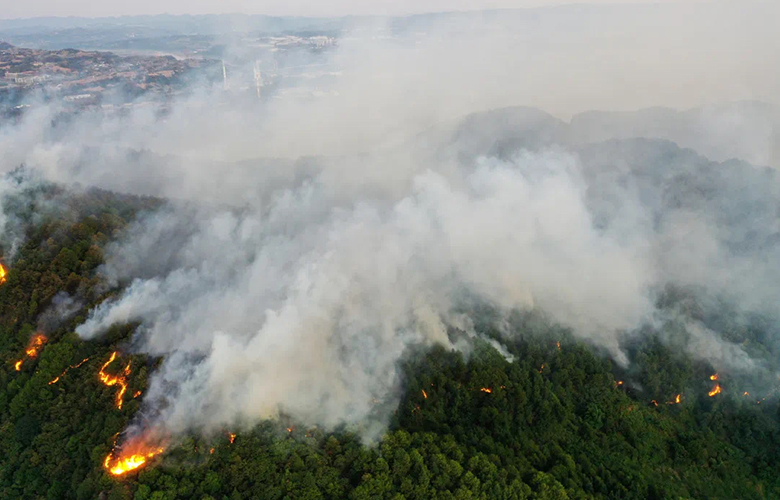 近期,我國多省市出現(xiàn)持續(xù)高溫干旱的極端天氣,致使重慶、四川等地接連發(fā)生多起森林火災(zāi)??N云山被稱為重慶主城區(qū)的“綠肺”,突發(fā)的山火牽動著全國人民的心,如果火勢一直無法得到有效遏制,后果將不堪設(shè)想。